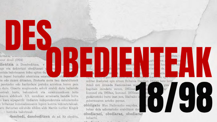 Bihar, hilak 8, Fernando Bernuések eta Mireia Gabilondok zuzentzen duten Desobedienteak 18/98 izeneko lanaren estreinaldia egingo da Bilboko Arriaga Antzokian. Hurrengo bi egunetan gaztelaniazko bertsioa eskainiko da.