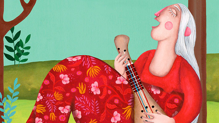 Pieza ikusgarrian honako hau kontatzen da: Behin batean ari omen ziren laminak pala batzuekin jolasean, Euskal Herriko baso magiko batean. Marik pala horietako bat hartu, barrutik hustu eta lau soka josi omen zizkion: soka bat lurrarentzat, marroia, beste bat urarentzat, urdina, beste bat haizearentzat, gardena, eta beste bat suarentzat, gorria. Horrela sortu ei zuen Euskelelea, bere kantuak laguntzeko musika-tresna aproposa, eta gerora munduan zehar zabalduko zena, lekuan lekuko izen eta musikak bereganatuz.