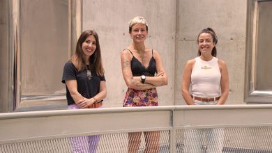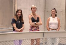 Airean, eta hormatik zintzilik hiru dantzari arituko dira: Sara Mohino, Alejandra Perez eta Janire Etxabe.