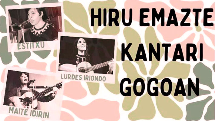 Gaur, martxoak 4, Hiru emazte kantari gogoan ikusgarria antolatu da, Euskal Herriko hiru emazte kantariren omenez: Lurdes Iriondo, Maite Idirin eta Estitxu Robles Arangiz.