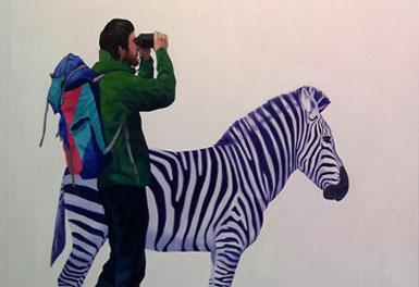 Tesi horren harira, Rekalde Aretoko erakusketak ere bidaiak eta pinturak lotzen ditu: “Bidaiaren esperientziatik margolanera igaro ondoren, pertsonaia -bidaiari- margolariak hartzen duen pertsonaia edo maskararen ondorioa da Basoko zaindaria”. Bidaia piktoriko horrek egilea eta animaliak lotuko ditu.