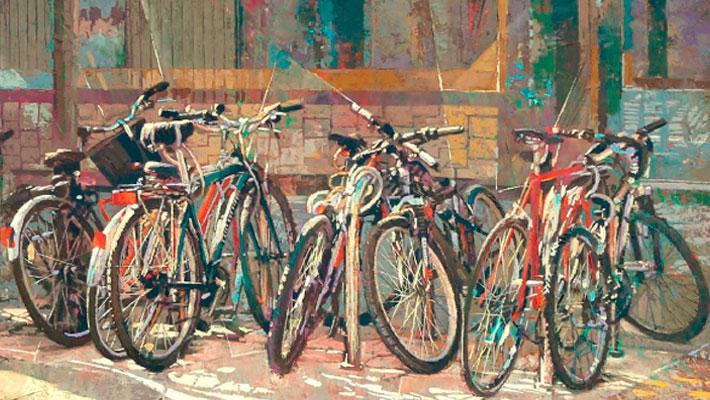 Hala, farolak, txirrinduak, botilak, kaleak edo bazterrak margolan “ikusgarri” bihurtzen dira Guijueloko artistaren eskuetan.
