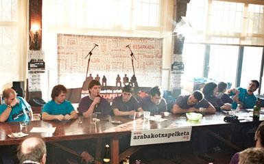 Ostiralean, Gasteizko Gaztetxean jokatutako Gasteiz-Aiaraldeko ligako saioak eman zion hasiera taldeka jokatzen den Arabako Kuadrilla arteko Bertso Txapelketari. Tenperatura hotzak baina giro beroan bertso sortetako bi talde eta bat-bateko beste bi aritu ziren, saiora laurogeita hamar bertsozale inguru gerturatu zirelarik. Afaldu ostean, Beñat Goitia gai-jartzaileak hartu zuen hitza bertso idatzietako bi taldeak aurkezteko. Gasteizko Gaztetxea taldeak eta Aguraingo Gazte Asanbladakoek, papera eskuetan, ikuskizun polita eskaini zieten bertsozaleei. Horren ostean, bat-bateko saioari eman zioten hasiera, bi taldeen bertsolariek agur kolektiboan Ekaitz Samaniego, kartzelan dagoen Gasteizko Muinoko Katuak taldeko kidea aipatu zuten, “Samaniego, Samaniego, Ekaitz Samaniego etxean” leloa abestuz.
