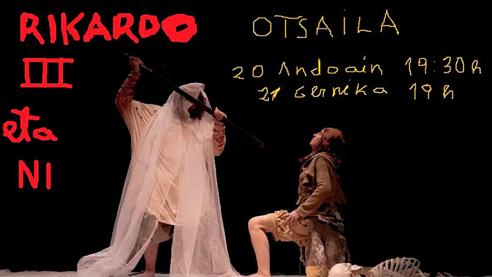 Horman Poster eta Dxusturi teatroa taldeek Rikardo III eta ni aurkeztuko dute Andoain Bastero Kulturgunean, otsailaren 20an, 19:30ean, eta hurrengo egunean, Gernikan izango dira, 19:00etan.