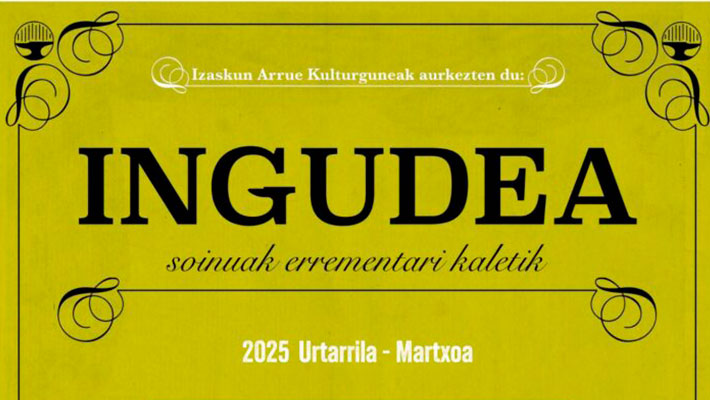 Lazarraga Kultur Elkarteak musika ziklo berria jarriko du martxan martxora bitartean: Ingudea, soinuak errementari kaletik. Bertan, “musika-proposamen desberdinak, arriskatuak hainbat kasuetan eta talentu gazteaz (eta ez hain gazteaz) gozatzeko aukera” eskainiko da. Kontzertu guztiak ostiraletan izango dira, Gasteizko Izaskun Arrue Kulturgunean, iluntzeko 20:30etik aurrera.