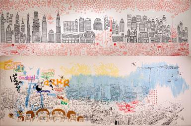 “Hiriko Fikzioak erakusketak komikiari kultura produktu den aldetik heltzen badio ere, ez da komikiari buruzko erakusketa bat. Izan ere, beste arte manifestazio garaikide batzuei ere heltzen die: komikiaren estetikaren herentzia dutenei eta komikiaren hizkuntza baliabideak nabarmen erabiltzen dituztenei. Hiriko Fikzioak bildumak irudia kokatu egiten du, hiriarenaren arabera, eta, binetatik abiatuta, hirien zenbait errealitate sozialen inguruan eratzen den diskurtso zabal batera garatzen da”, dio bidali duten oharrak.